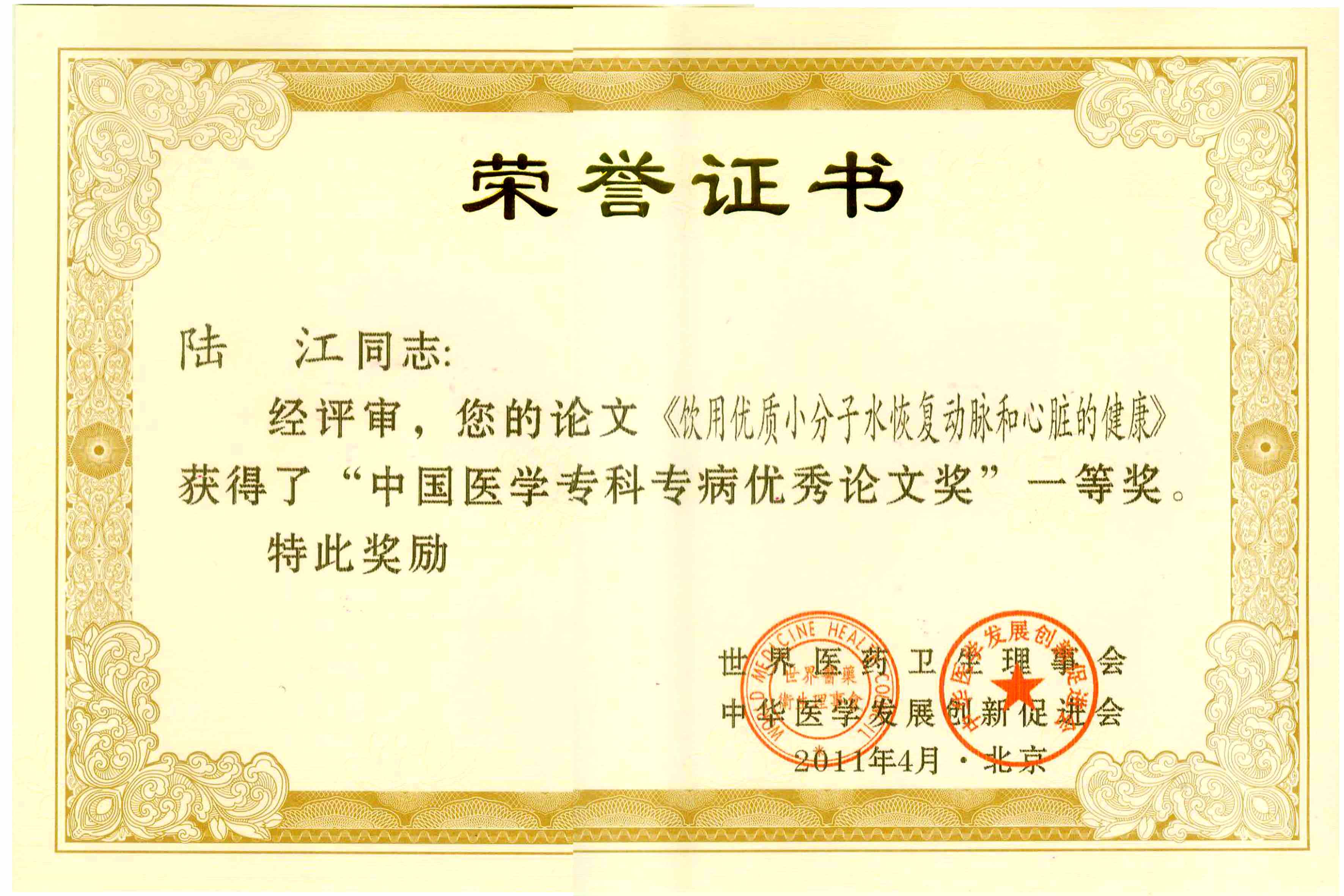 人類幾千年來患以上病癥需終生服藥,幾十年也不能治愈。可是我國南寧的高級工程師陸 江,于1990年想根治高血壓,研究發(fā)明了離子水瓶,處理出微小分子團(tuán)水供飲用,經(jīng)過醫(yī)院臨床試用和專家鑒定,1999年獲中國發(fā)明專利權(quán),產(chǎn)品于2000年投放市場后一直跟蹤調(diào)查,據(jù)全國各地用戶反饋:祛除了高低血壓、糖尿病和冠心病,并使前列腺增生、咽喉炎、鼻竇炎、慢性氣管炎、支氣管炎、矽肺病、哮喘、慢性胃炎、腸炎、慢性膽囊炎、慢性腎炎、腎衰、膀胱炎、便秘、痔瘡、風(fēng)濕性關(guān)節(jié)炎和濕疹皮炎及中風(fēng)后遺癥等病癥不藥而愈。為什么喝微小水能治20多種病?陸 江從1991年德國科學(xué)家發(fā)現(xiàn)細(xì)胞膜水通道僅為2納米獲得啟發(fā),認(rèn)為多種器官患病是因細(xì)胞脫水,不能正常代謝和分裂增殖,才使器官細(xì)胞減少致衰弱萎縮而形成細(xì)胞缺水性病癥。22年來的實踐有力地支持了“細(xì)胞脫水致病”這一重要論點,表明喝微小水可滿足細(xì)胞的生理需求,補水就能祛病,是生命科學(xué)新亮點。